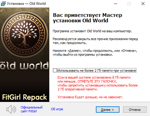 - Для установки репака требуется минимум 2 Гб свободной оперативной памяти (включая виртуальную)