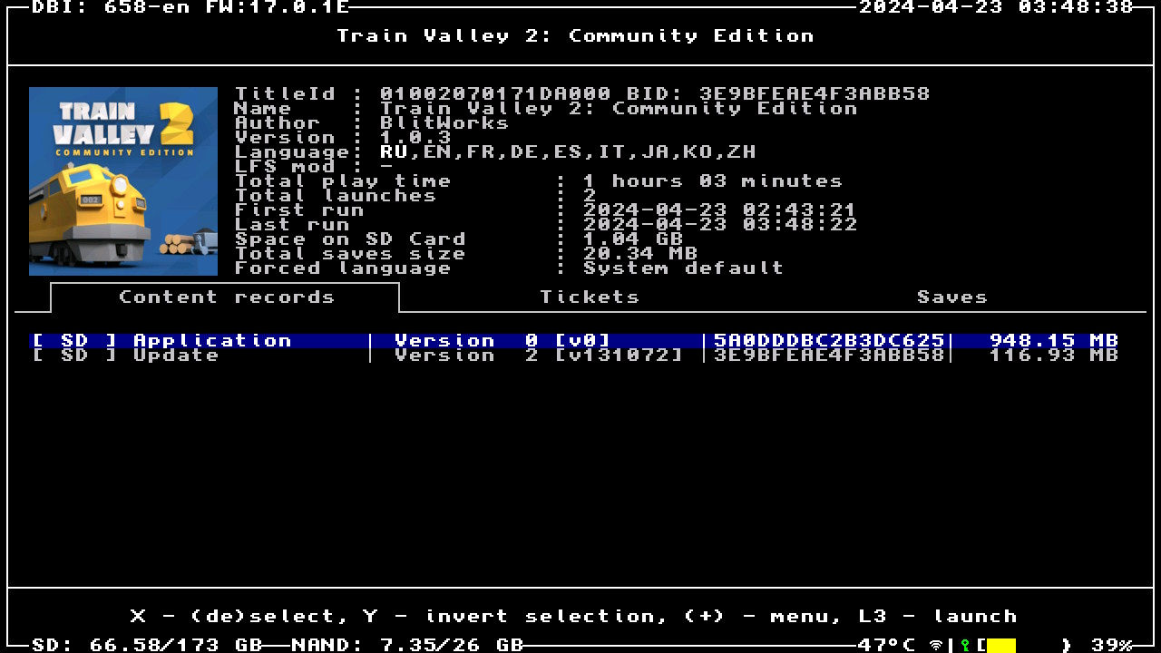 Формат образа: .NSZ (сжато ~52%, установленный объём 1.04 ГБ)